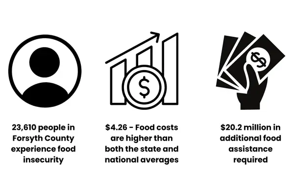 - An estimated $20.2 million in additional food assistance would be required to close the food insecurity gap in Forsyth County.