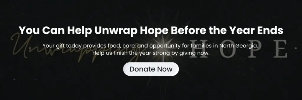 Your year-end gift helps families across North Georgia find food, hope, and transformation, turning hardship into possibility before the clock strikes midnight.