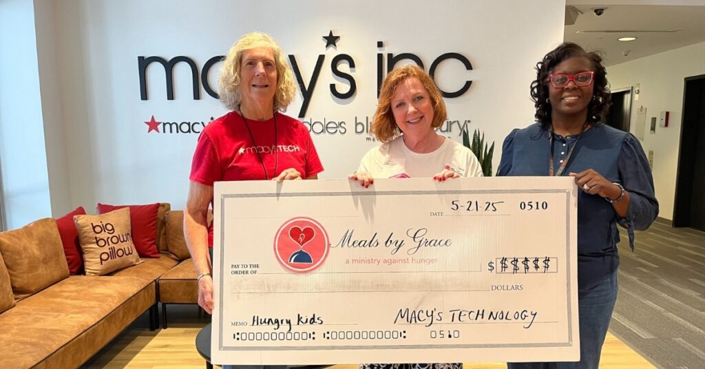 Each year in March, Macy’s holds Bag Hunger Month, a company-wide initiative to combat food insecurity. For their 2025 campaign, the MTech Team, the Technology division of Macy’s at the Johns Creek location, chose to support Meals by Grace, a home-delivery food program that meets the urgent nutritional needs of struggling families in North Georgia. More than just a meal service, Meals by Grace is part of a broader mission to walk alongside families facing hunger and hardship, offering not just food but hope, dignity, and a pathway to long-term stability.