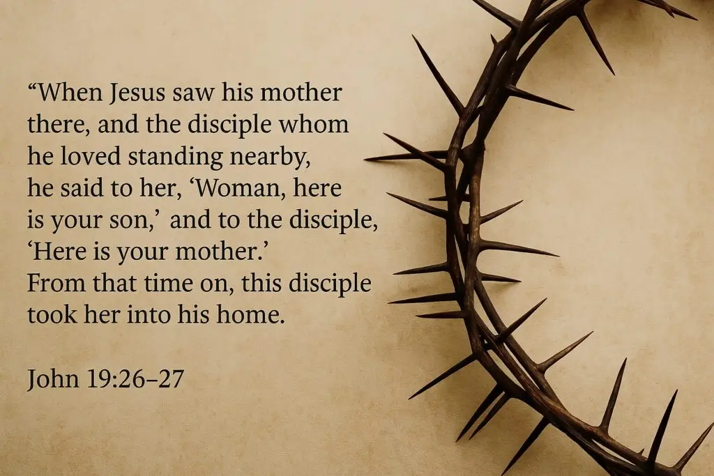 “Woman, here is your son,” and to the disciple, “Here is your mother.” (John 19:26–27)